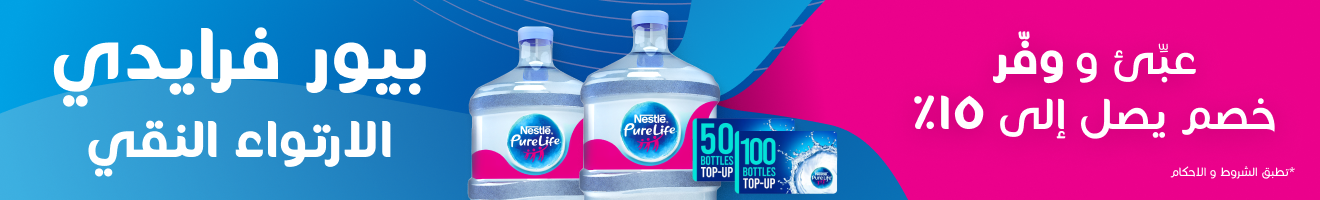 میاة نستلة بیور لایف-1.5 لترنستله بيور لايف تقدم مياه نقية ذات طعم رائع يمكن لعائلاتكم الثقة به. طعمها الخفيف والمنعش والجودة النقية تغطي احتياجات عائلتك من الترطيب الصحي١١٫٠٠QARيشمل ضريبة القيمة المضافة -